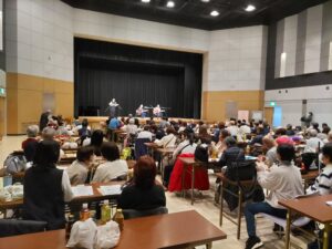 会員さんたちが、一年に一度、日頃の練習の成果を発表されるのが、この文化祭の日です。今年度の発表内容は、社交ダンス、ハーモニカ、ギター、ウクレレ、オカリナ、カラオケ、コーラス、ピアノ、詩吟、ヨガなど、過去最高にもりだくさんでした。出演された会員さんたちは、きらびやかな衣装や、サークルメンバーおそろいの衣装に身を包み、ステージの上でキラキラと輝いておられました。そして発表者はもちろん、聴衆のみなさんも、手拍子や拍手で大いに会場を盛り上げ、楽しい時間を過ごしておられました。参加者のみなさんからは、「発表内容が、年々、上達している。すばらしい歌声に感動した」「自分は歌も楽器も苦手だけど、来年はステージに立ってみたい」などの感想が聞かれました。 参加者は、会員59人、ガイドヘルパー・付き添い48人、その他30人、合計137人でした。 たくさんのご参加、ありがとうございました。